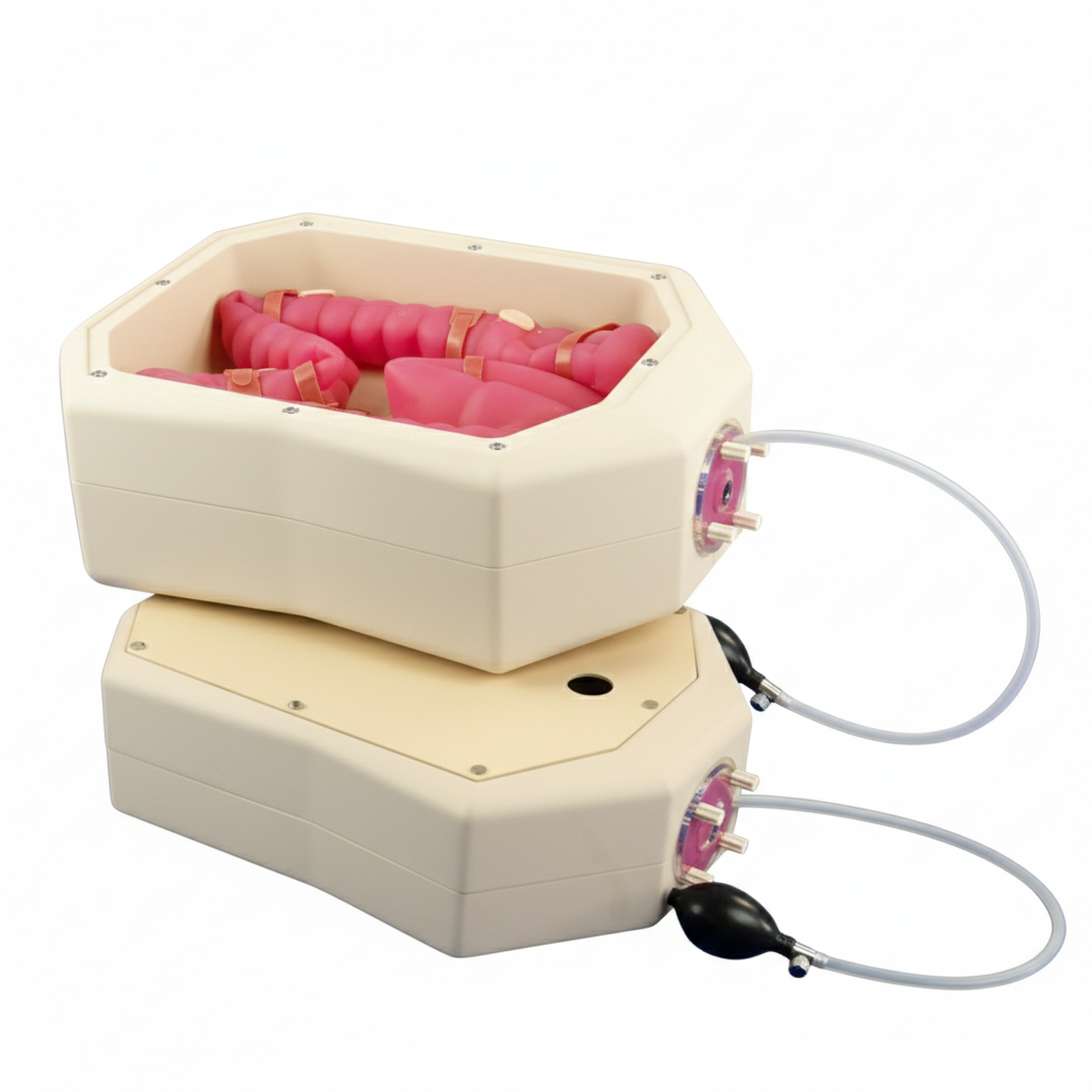 Тренажер отличается высокой степенью реализма. Анатомически точная модель толстой кишки включает все её отделы: от прямой до слепой кишки. Она изготовлена из специального материала, который достоверно имитирует плотность и эластичность живой ткани.